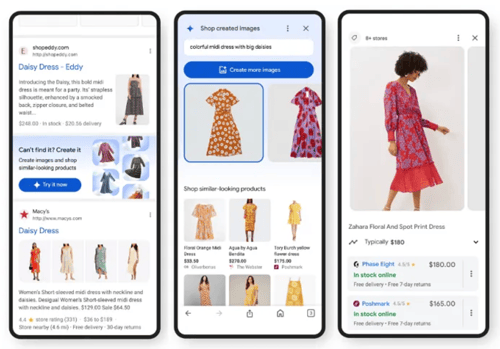 Naast die advertentieweergave bouwt Google meer generatieve AI in de ervaring. Wat al bestond in Shopping, een item genereren en daarna zoeken naar gerelateerde producten, breidt Google nu uit naar alle Search-queries.
