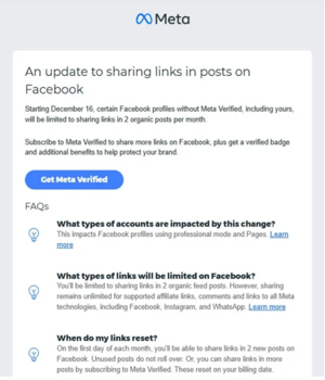 In de test mogen bepaalde professionele accounts en Pagina’s nog maar twee linkposts per maand publiceren. Wie meer links wil delen, moet een Meta Verified-abonnement nemen. Dat abonnement start vanaf 14,99 dollar per maand en kan voor bedrijven oplopen tot enkele honderden dollars, afhankelijk van het pakket.