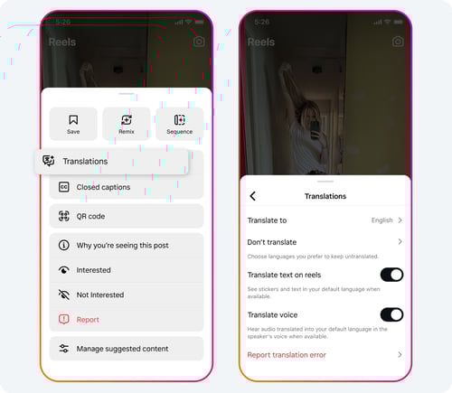 Instagram rolt AI-vertaling voor Reels verder uit, met ondersteuning voor een beperkte maar uitbreidende lijst van talen. Het gaat om automatische vertaling van: