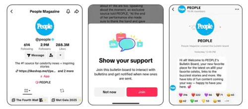 Bulletin Boards kunnen zichtbaar of onzichtbaar worden gemaakt op het profiel en volgers krijgen een melding wanneer de creator iets nieuws plaatst.