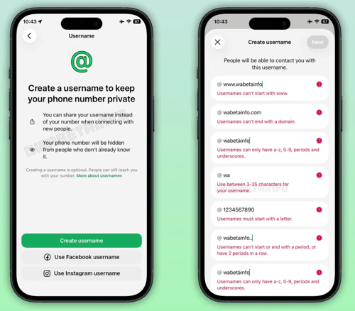 Wat verandert er? Tot nu toe had je een telefoonnummer nodig om met iemand te connecteren op WhatsApp. Met een gebruikersnaam hoeft dat niet meer. Je deelt gewoon je naam en de andere persoon kan je vinden en contacteren zonder je nummer te kennen. Handig als je iemand niet goed kent maar toch via WhatsApp wil communiceren.
