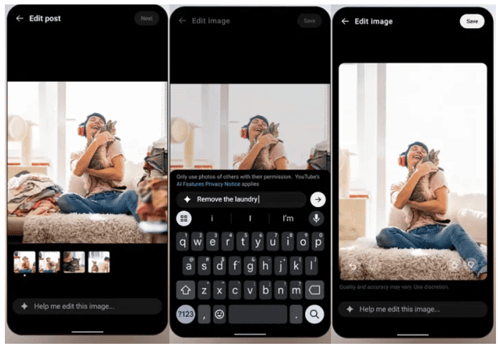 Daarnaast breidt YouTube zijn AI-tools verder uit. Met het nieuwe AI-model Nano Banana kunnen creators beelden in posts aanpassen met eenvoudige opdrachten. Je kan achtergronden wijzigen, storende elementen verwijderen of kleine visuele aanpassingen doen. Deze functie is voorlopig beschikbaar voor gebruikers ouder dan 18 in een beperkt aantal landen.